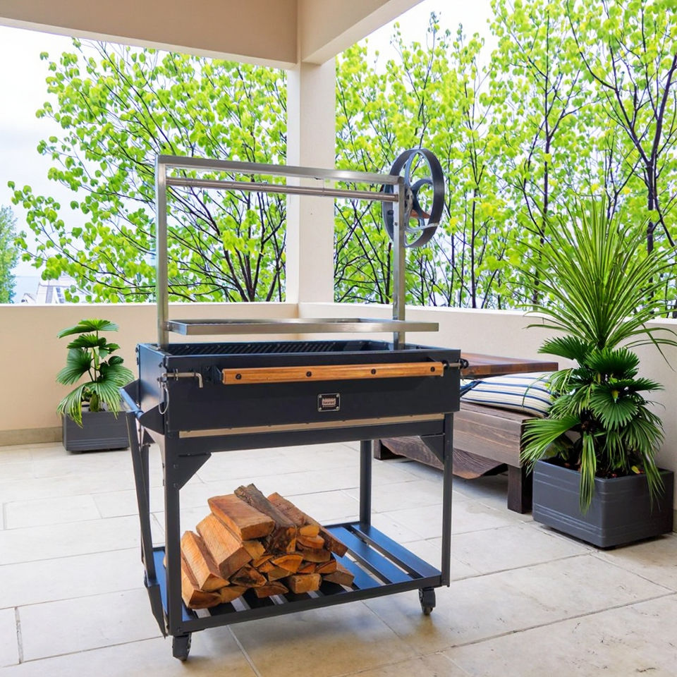 รถเข็นเหล็กแบบพกพาซานต้ามาเรียอาร์เจนตินาแบบปรับได้ใช้ในร่ม/กลางแจ้งเคลือบผงสำหรับงานปาร์ตี้โก/อัสซาโด
