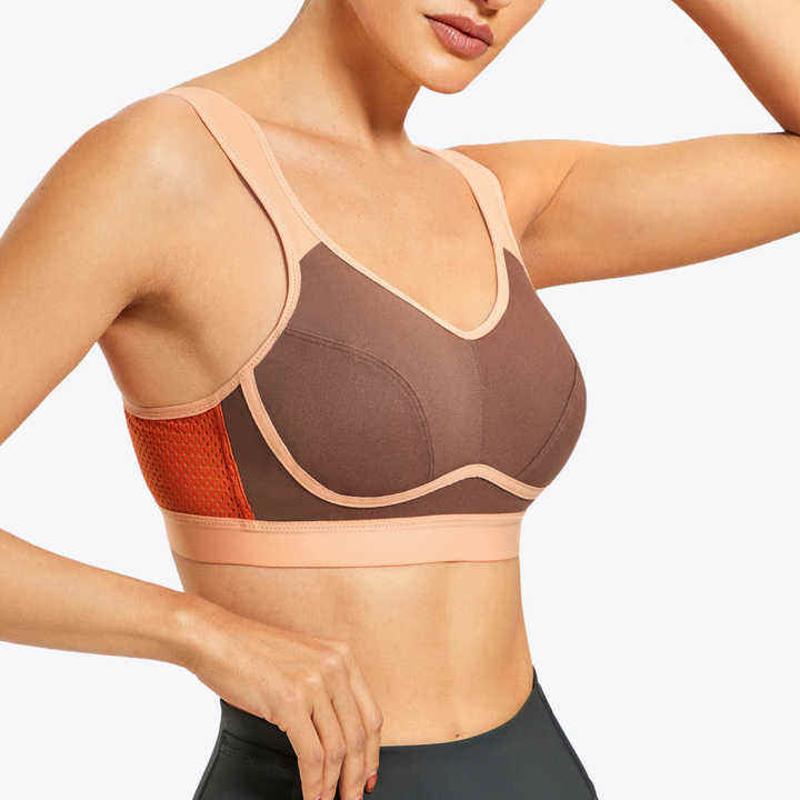 สปอร์ตบรากันกระแทกปรับได้สำหรับผู้หญิงชุดออกกำลังกายไร้รอยต่อแรงกระแทกสูงพร้อมโลโก้ขนาดพิเศษ