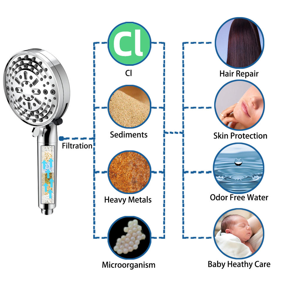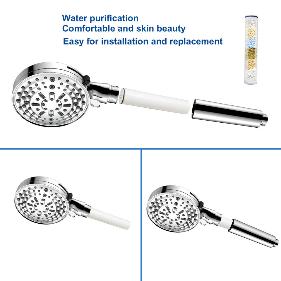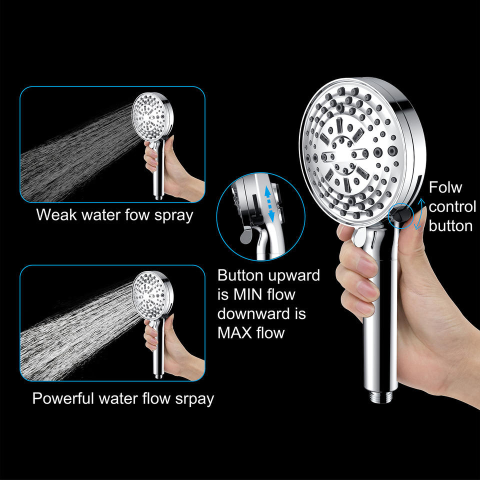 หัวฝักบัวปรับระดับได้ SSK791 ชุบโครเมียมทรงกลมแบบพกพาพร้อมปุ่มควบคุมการไหล
