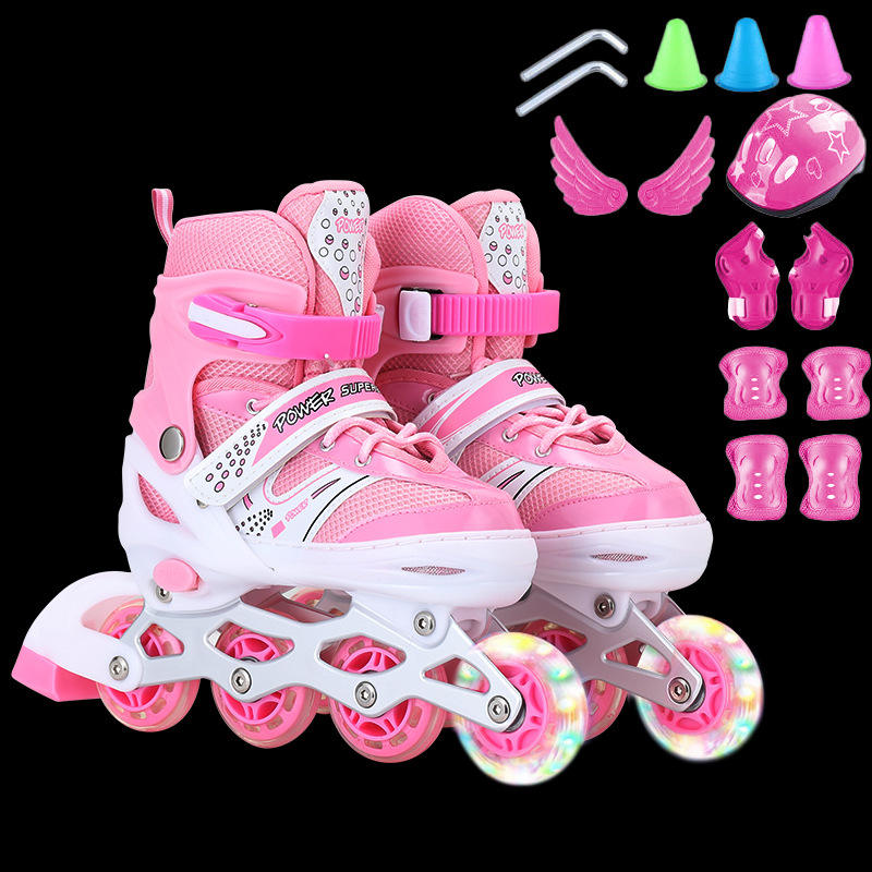 โรลเลอร์สเกตพีวีซีสำหรับเด็กแบบแถวเดียวปรับได้รองเท้าสเก็ตสองแถวสำหรับผู้เริ่มต้น