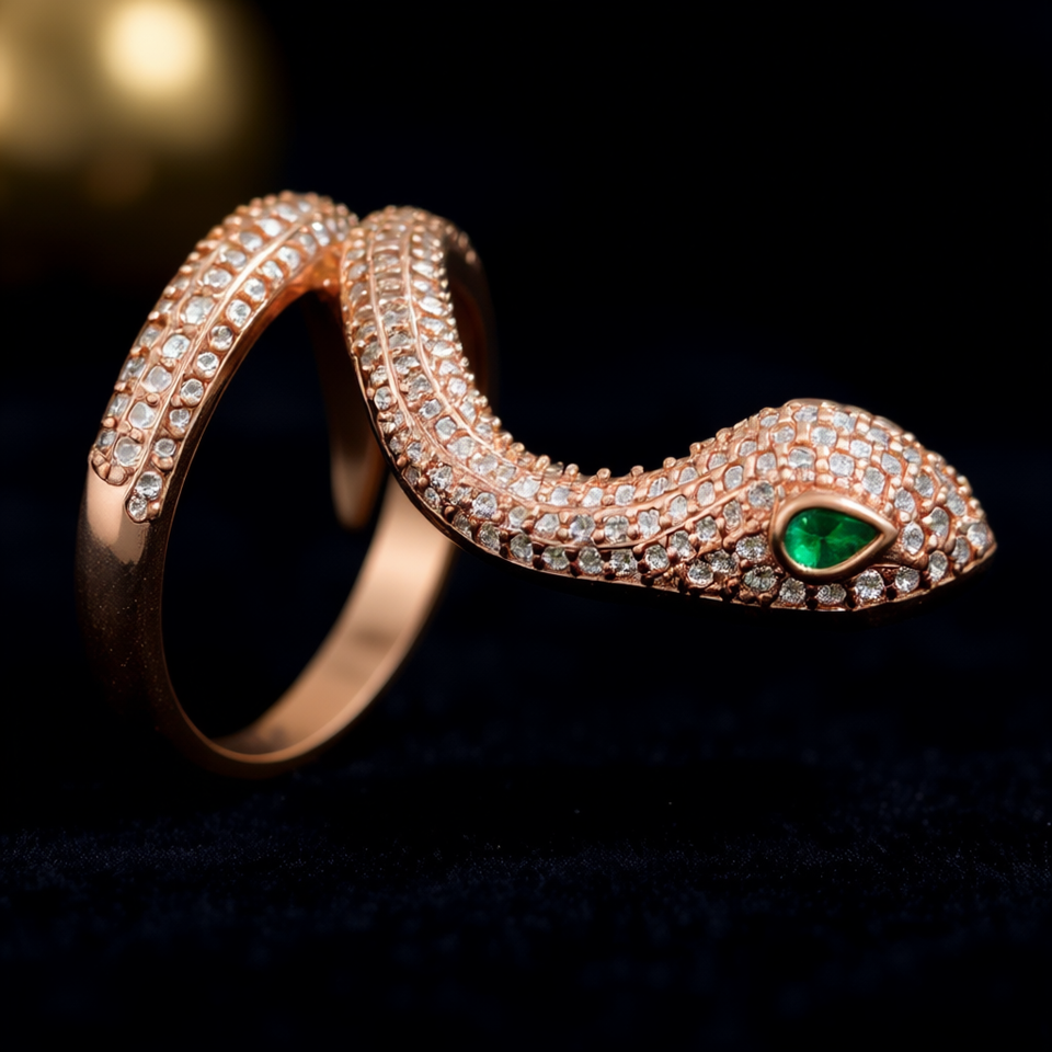 แหวนรูปงู ชุบทองคำขาว ประดับเพชร CZ ใส 18K ฝังไทเทเนียม แหวนเปิดปรับขนาดได้ แฟชั่นทันสมัย ของขวัญสำหรับทุกเพศทุกวัย เครื่องประดับสำหรับใช้ในชีวิตประจำวัน