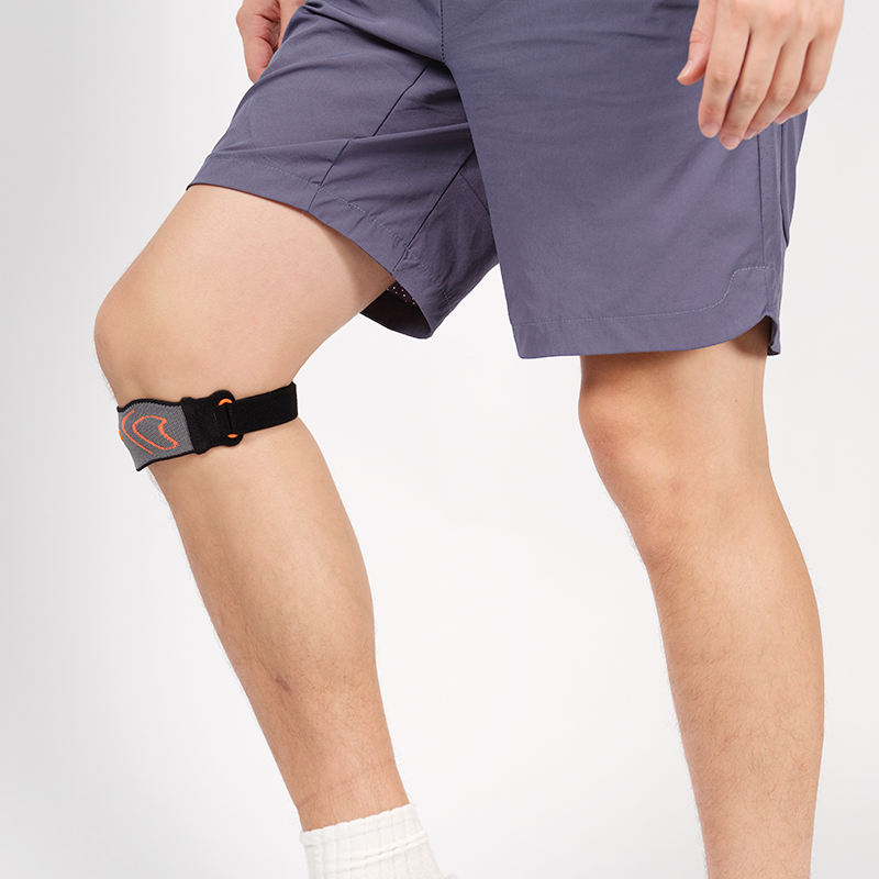 สายรัดป้องกันเข่าสำหรับเล่นกีฬาวิ่งออกกำลังกายมีความยืดหยุ่นสามารถปรับได้เข็มขัดพยุงข้อเข่าสำหรับเล่นบาสเก็ตบอลขี่จักรยาน