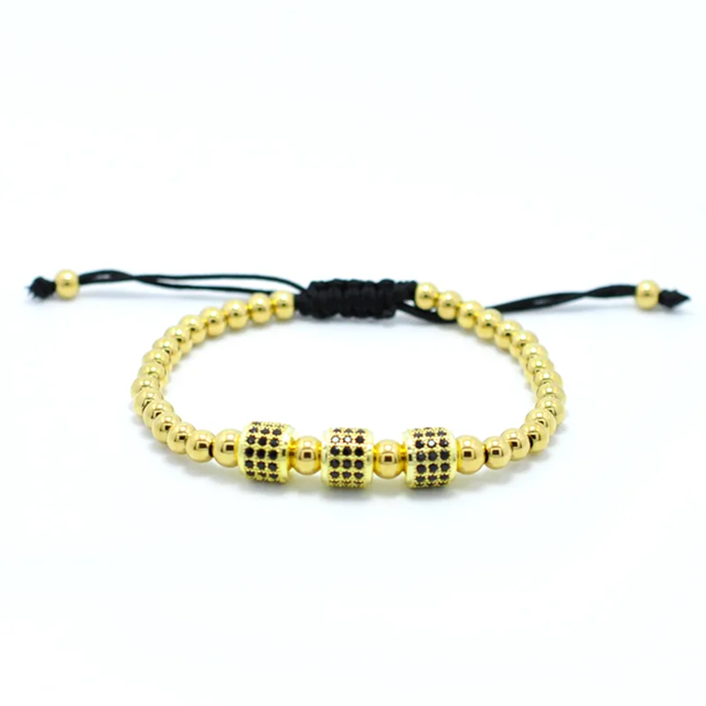 สร้อยข้อมือสแตนเลสแบบปรับได้สำหรับผู้ชายสร้อยข้อมือลูกปัดมุกสีดำ