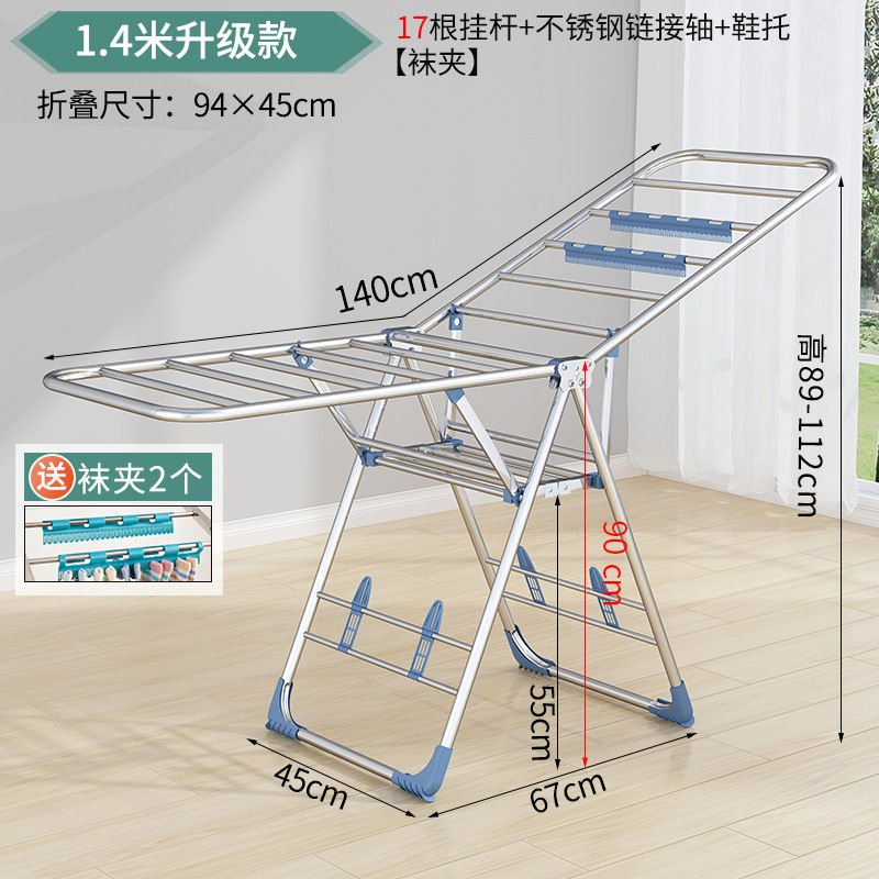 ราวตากผ้าสแตนเลสแบบพับได้รูปตัว X ปรับระดับได้ สำหรับใช้ภายนอกอาคาร แบบสองชั้น ตั้งพื้น สำหรับห้องน้ำ