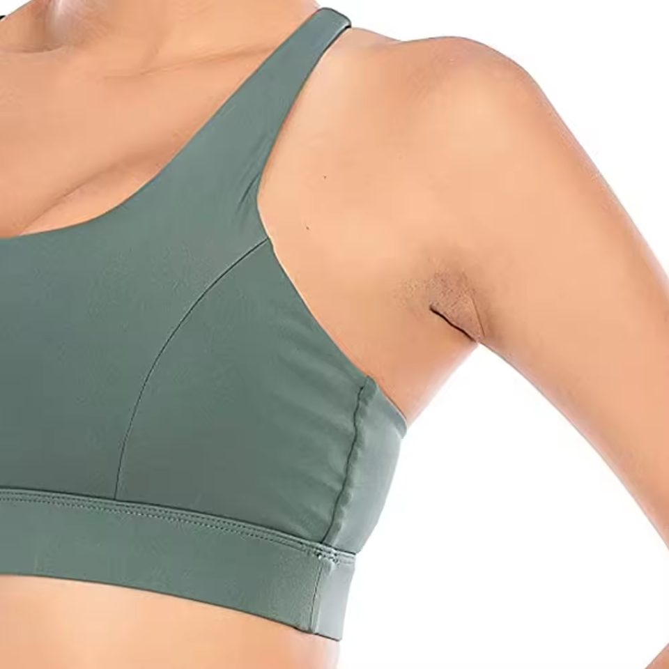 สปอร์ตบราสายรัดข้อมือปรับได้สำหรับผู้หญิงเสื้อชั้นในออกกำลังกายมีแรงกระแทกสูงโลโก้ได้ตามต้องการ