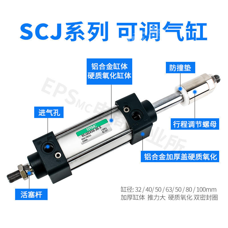 อุปกรณ์กระบอกลมแบบปรับระยะชักได้ SCJ50/SCJ63 ทำจากทองเหลืองและพลาสติก สำหรับอุตสาหกรรมระบบลม-25/50/100-S ขนาดต่างๆ