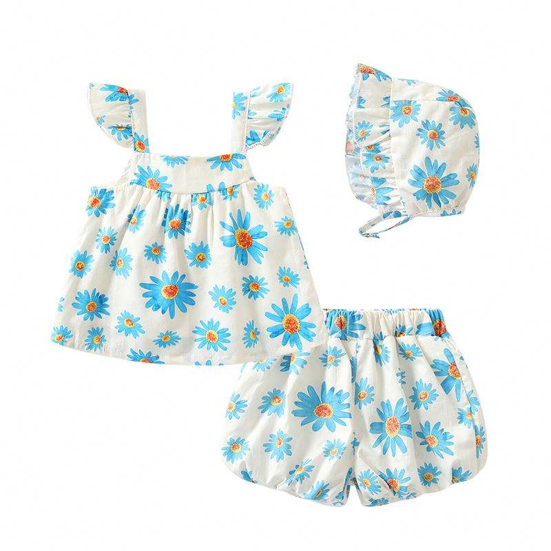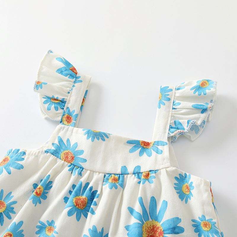 Adjustable Summer Romper for Baby Girls 3-6 Months Casual Cotton Clothing Set with Frills 3pcs
