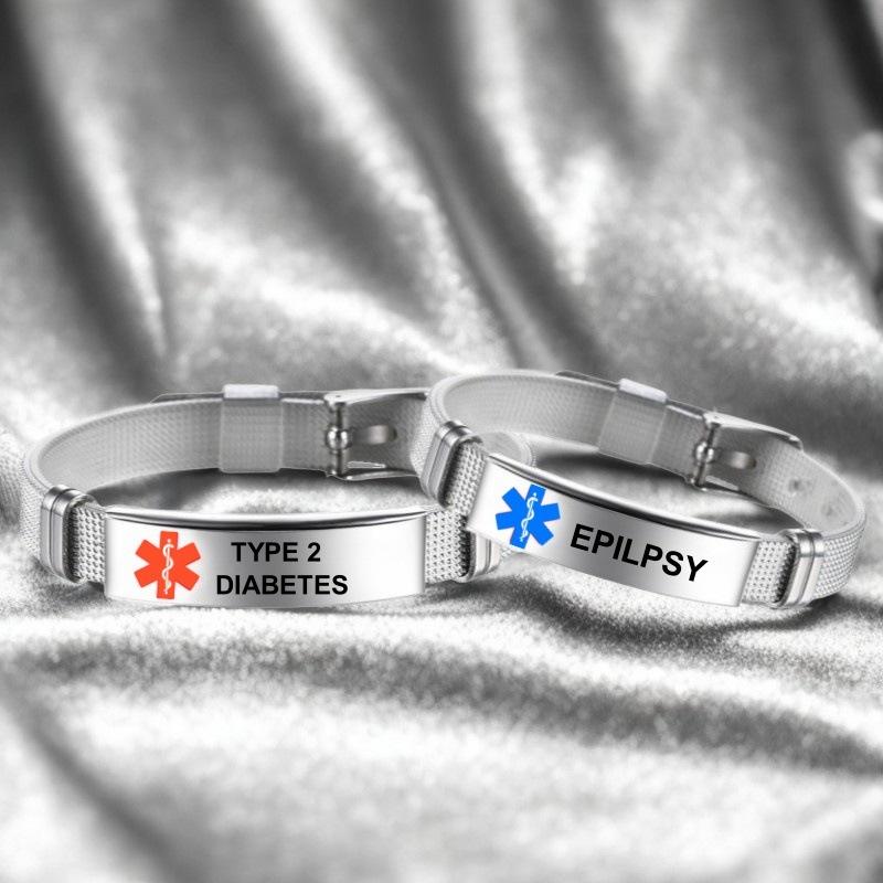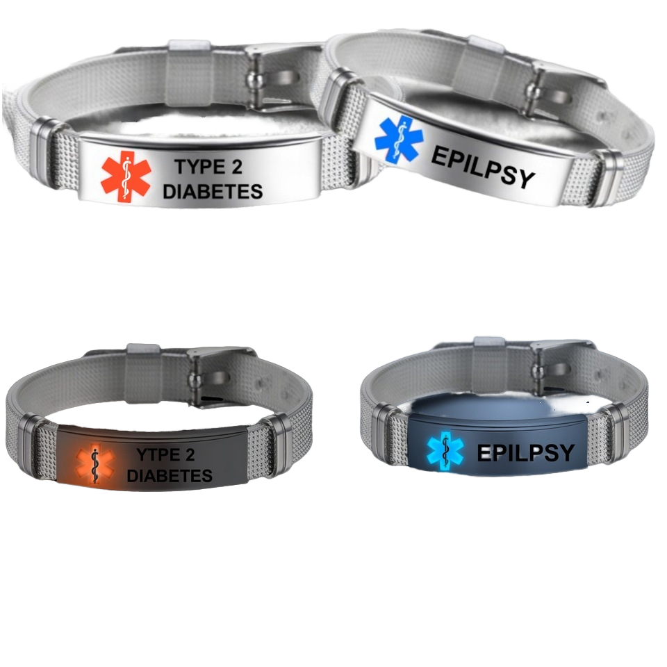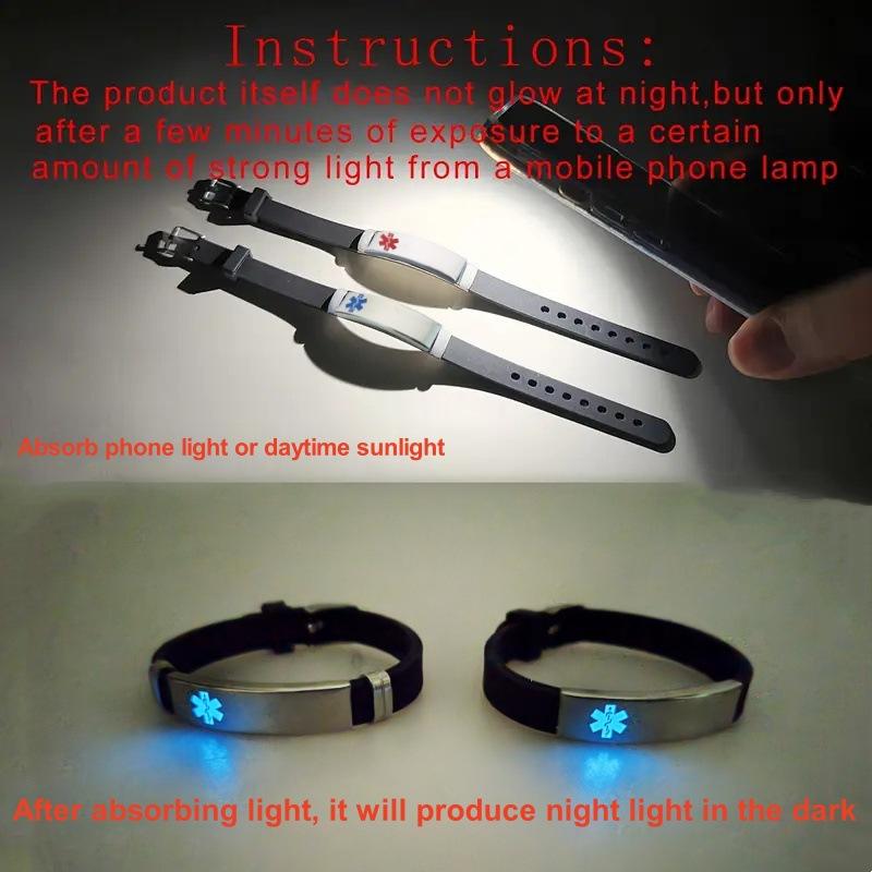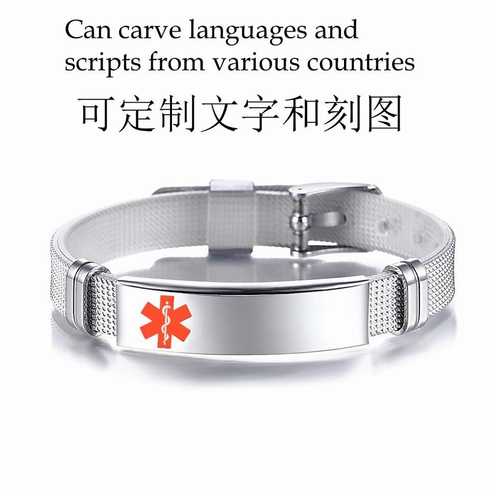 กำไลข้อมือทางการแพทย์เรืองแสงทำจากเหล็กไทเทเนียมปรับได้แฟชั่นแกะสลักทางการแพทย์โค้ง