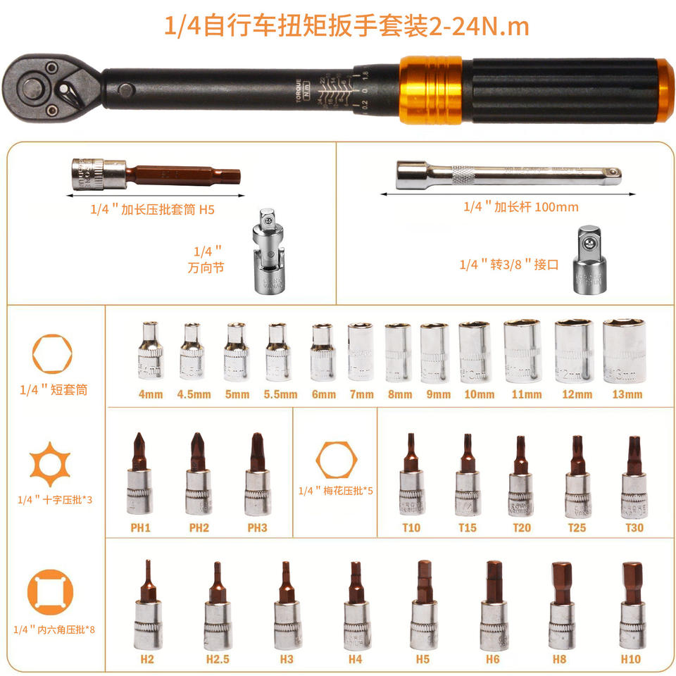 14 33-piece torque wrench set (black and gold)