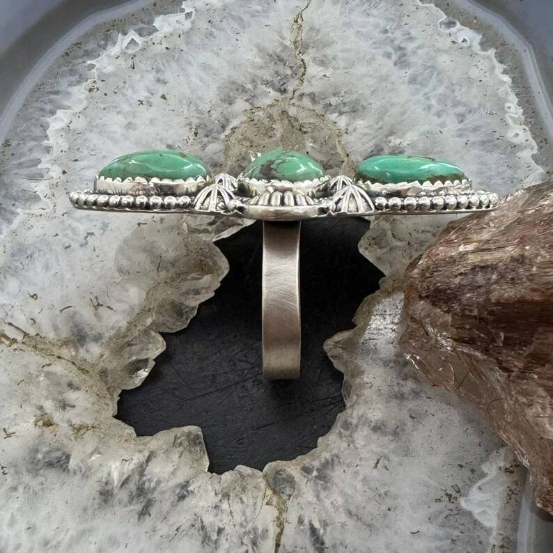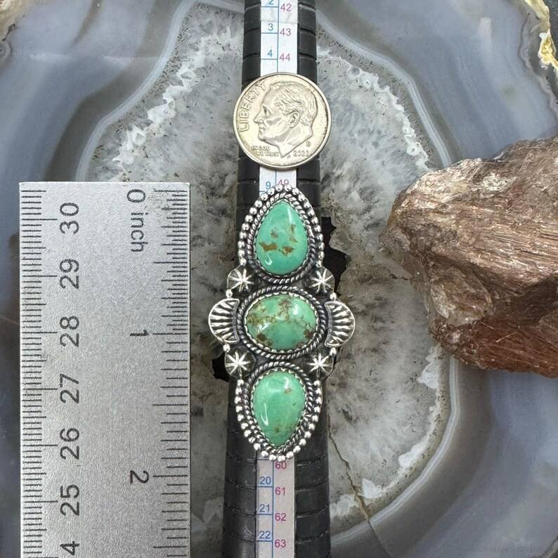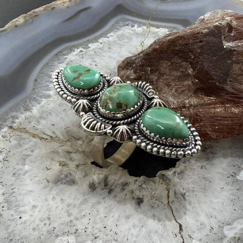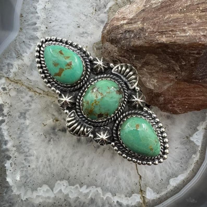 แหวนพลอยเทอร์ควอยซ์แบบปรับได้ทำด้วยมือสไตล์ตะวันตกโบโฮเครื่องประดับทรงหยดน้ำสีเขียวงานแต่งงานงานปาร์ตี้เงินสเตอร์ลิง