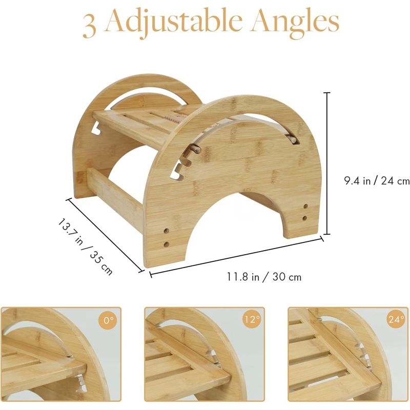 ที่วางเท้าแบบปรับได้พร้อมลูกกลิ้งนวดที่วางเท้าไม้ไผ่ใต้โต๊ะเก้าอี้วางเท้าแบบปรับได้