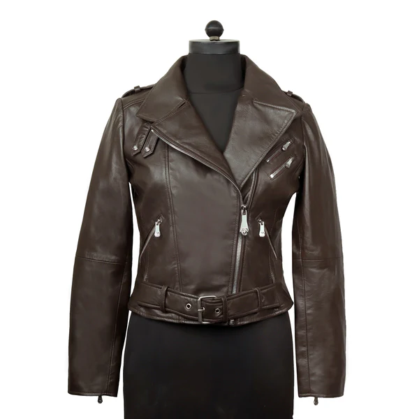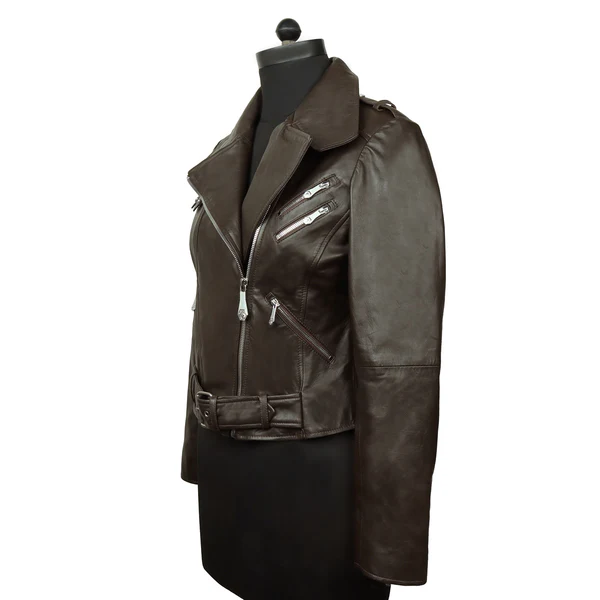 เสื้อแจ็คเก็ตหนังวัวสำหรับขี่มอเตอร์ไซค์ ปรับเอวได้ สีน้ำตาลเข้ม แขนยาว กันน้ำ กันลม สำหรับผู้หญิง ฤดูใบไม้ร่วง ฤดูหนาว