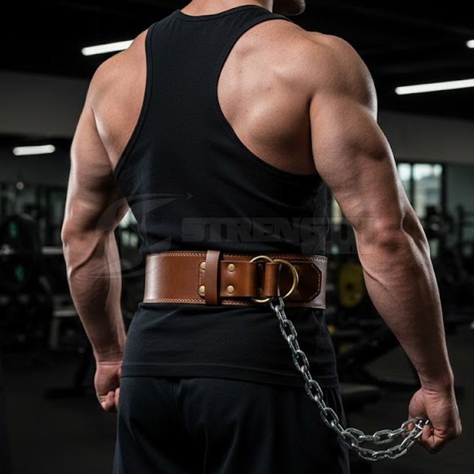 Adjustable Weightlifting Dip Belt Leather With Chain For Pull Up Training Gym Use Weightlifting Dip Belt