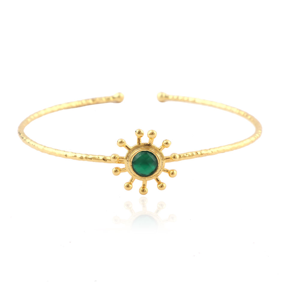 กำไลข้อมือดีไซน์เนอร์มีพื้นผิวลายพระอาทิตย์สีมรกตปรับได้ของผู้หญิงกำไลข้อมือแฟชั่นเครื่องประดับสำหรับงานปาร์ตี้