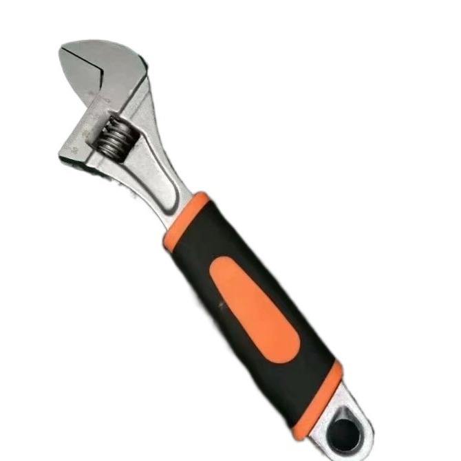 ประแจเหล็กคาร์บอนแบบปรับได้ขากรรไกรแบบเรียบเกรดอุตสาหกรรมที่มีฝาครอบมือจับกันลื่นแบบ1