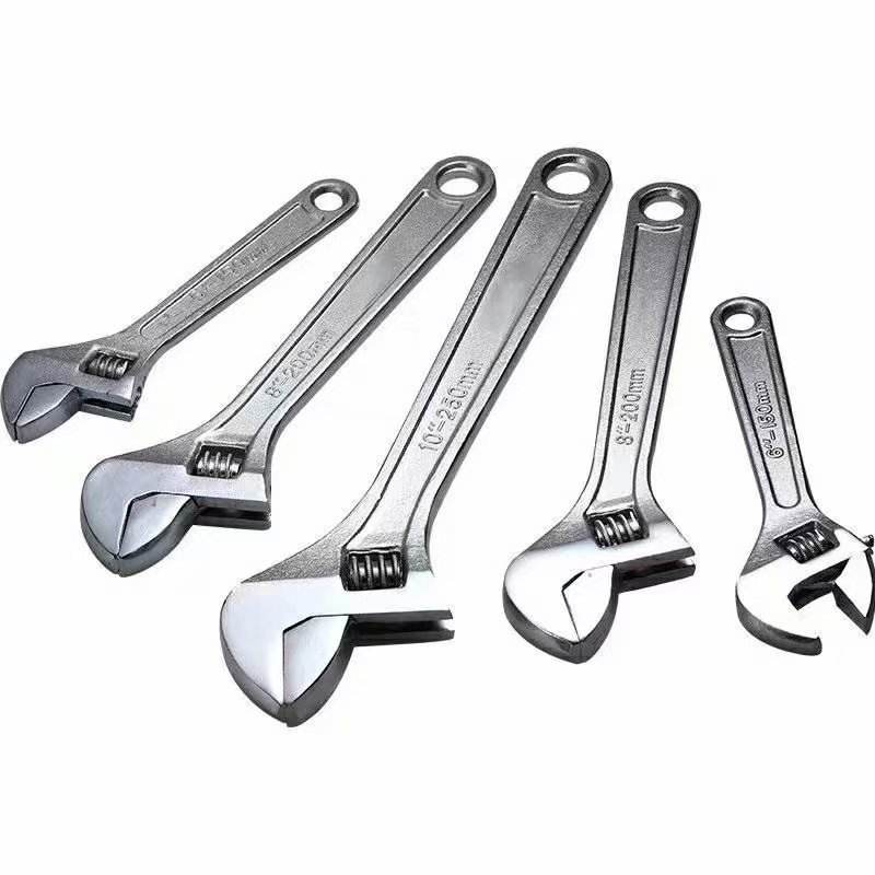 ชุดประแจปรับขนาดได้ 6-15 นิ้ว เหล็กกล้าคาร์บอน ปากเรียบ เกรดอุตสาหกรรม ชุบโครเมียม ความยาวเต็ม 200 มม.