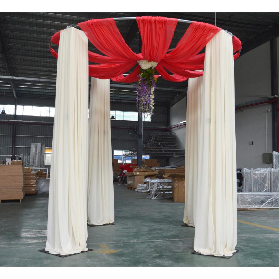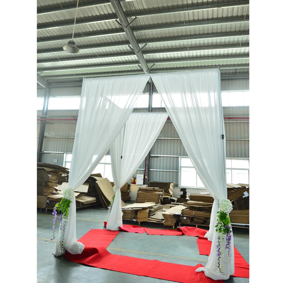ชุดฉากหลังอลูมิเนียมสีเงินแบบปรับได้พร้อมผ้าม่านสำหรับงานแต่งงาน