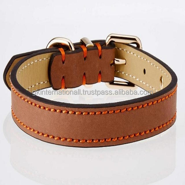 ชุดปลอกคอและสายจูงสุนัขหนังแท้บุนวมสีน้ำตาลปรับได้ดีไซน์ตามต้องการปลอกคอสัตว์เลี้ยงเย็บเต็มรูปแบบและอุปกรณ์เสริมสำหรับสุนัขทุกขนาด