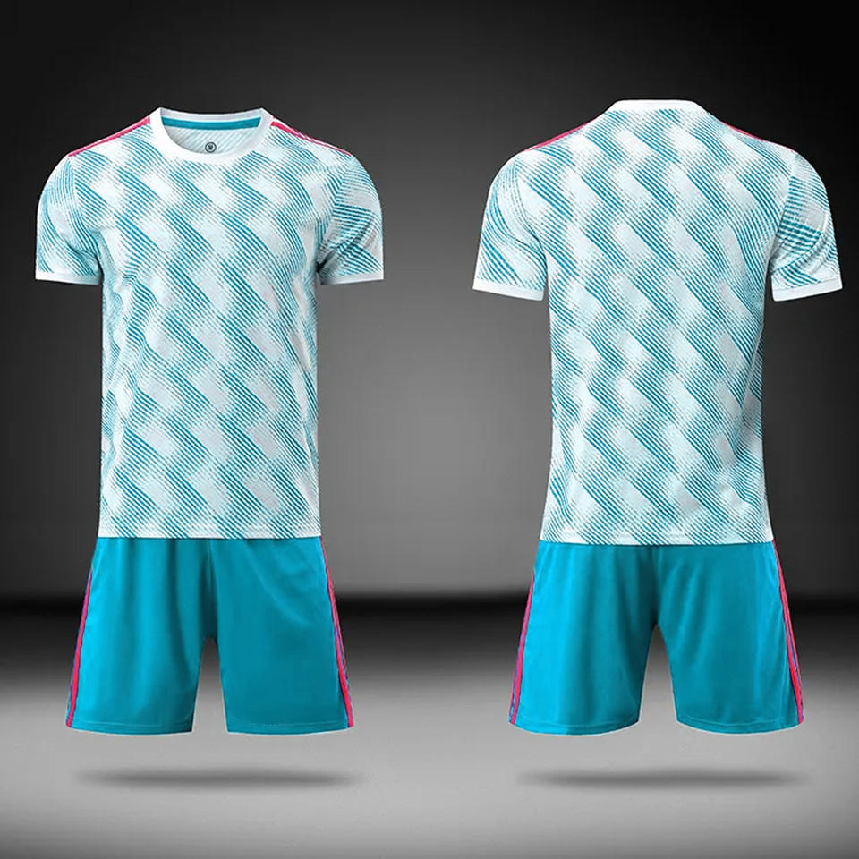 ชุดฟุตบอลสำหรับผู้ชายเครื่องแบบป้องกันริ้วรอยชุดฟุตบอลน้ำหนักเบาระบายอากาศได้ดีปรับได้