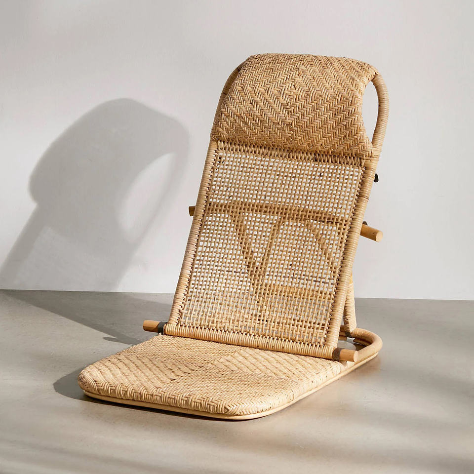 เก้าอี้หวายปรับระดับได้พับได้สำหรับชายหาดตั้งแคมป์เก้าอี้เลานจ์พับได้อย่างยั่งยืนสำหรับการนั่งริมทะเลพร้อมที่วางศีรษะ