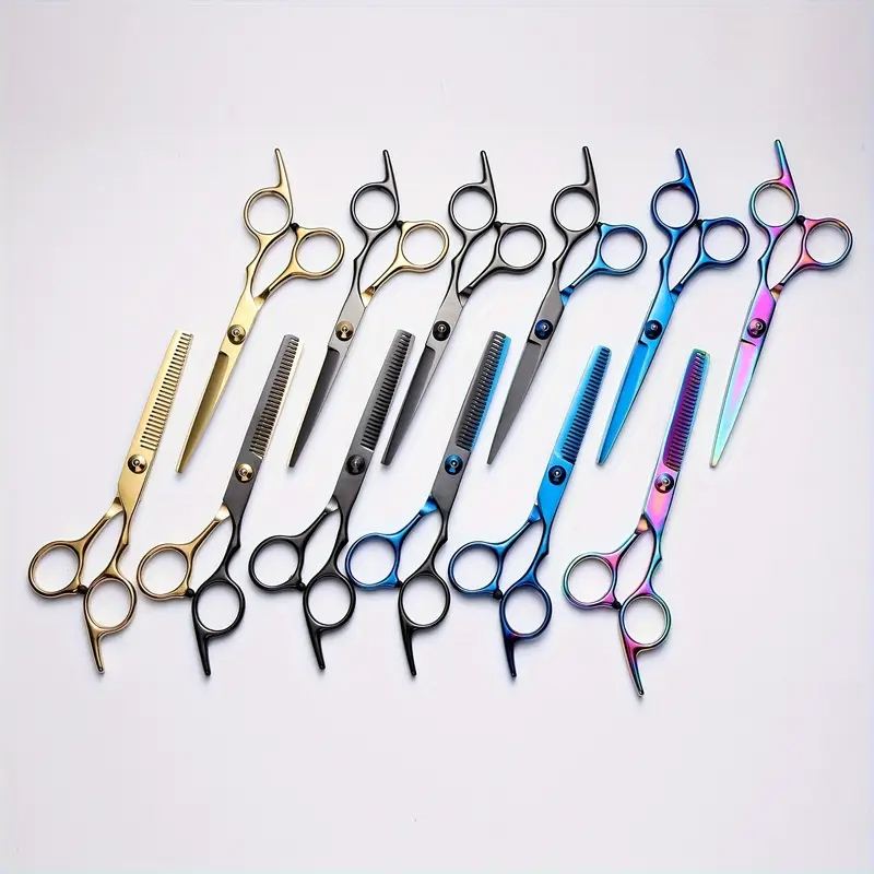 ชุดกรรไกรตัดผมแบบสกรูปรับความตึงได้สำหรับร้านเสริมสวยกรรไกรตัดผมบางเครื่องมือช่างตัดผมสแตนเลสสำหรับช่างทำผม