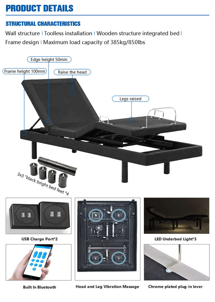 ฟังก์ชัน:หัว/footlifting, นวด, บลูทูธในตัว, พอร์ตชาร์จ USB คู่ * 2