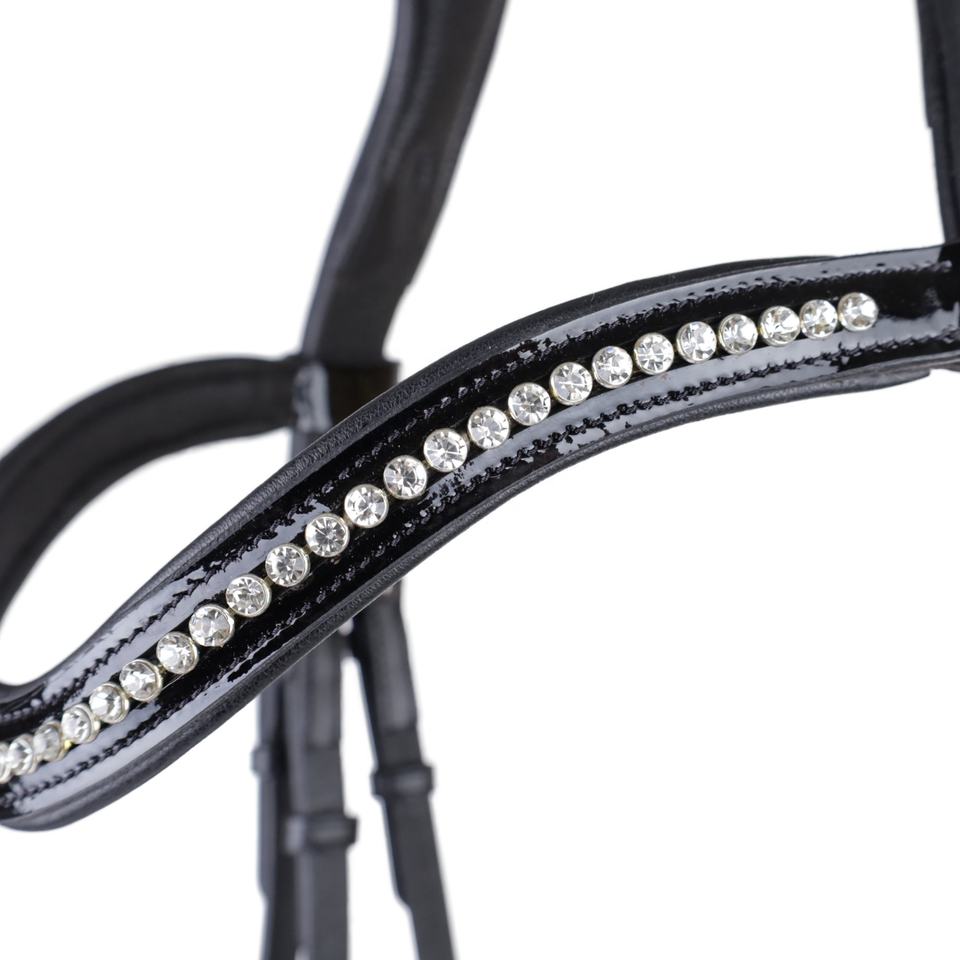 สายรัดข้อมือหนังสีดำพร้อมบิลคริสตัลและจมูกมีสิทธิบัตรสีดำ