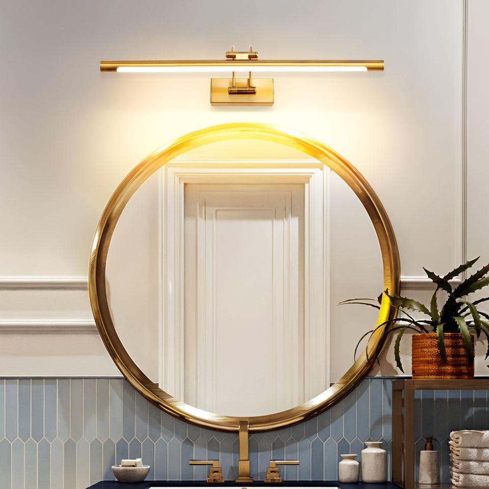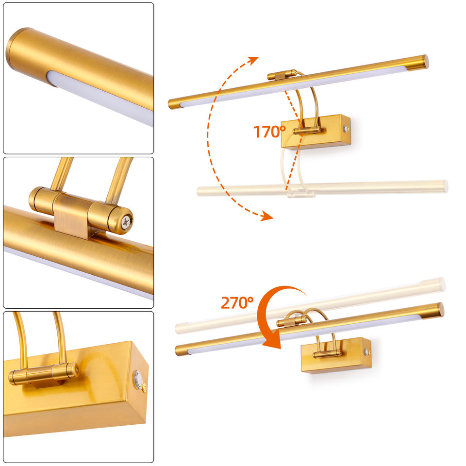 ไฟติดผนังอลูมิเนียมสีทองปรับได้ไฟ LED โต๊ะเครื่องแป้งในร่มควบคุมด้วยการสัมผัสภาพโลหะไฟติดผนังกันน้ำไฟกระจก