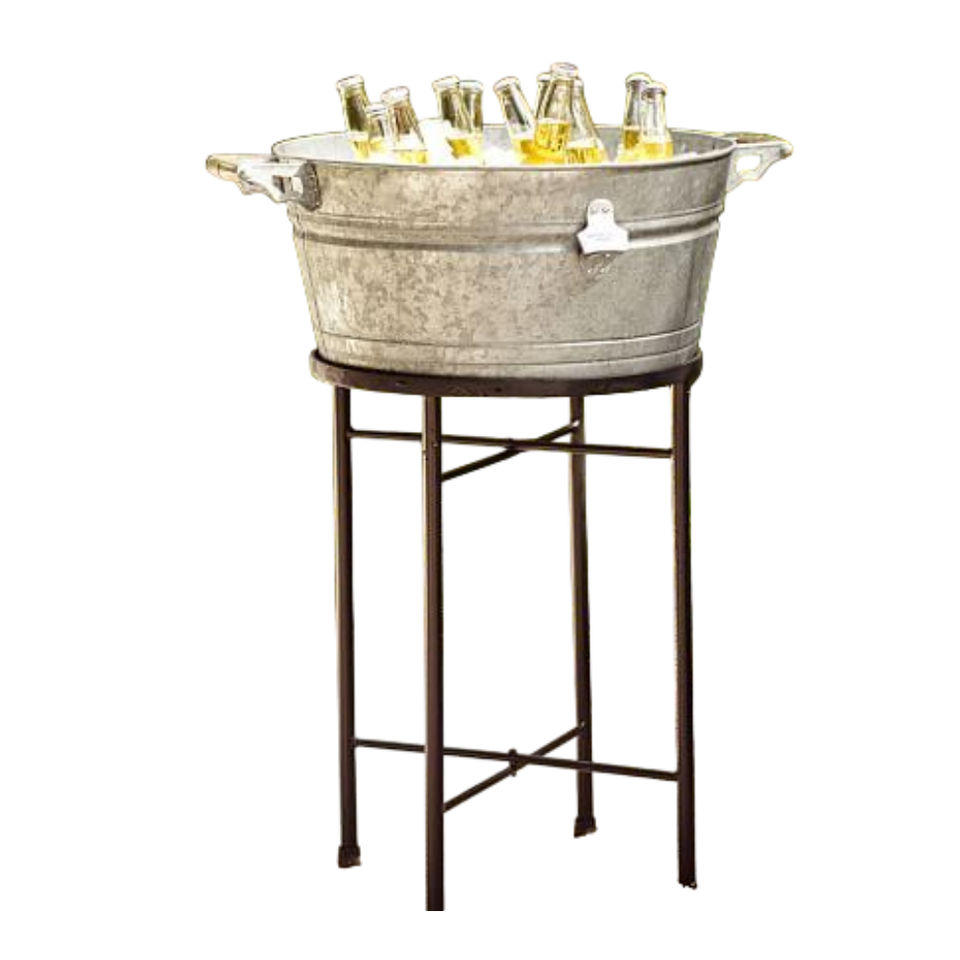 อ่างแช่เครื่องดื่มเหล็กชุบสังกะสี ดีไซน์สวยงาม พร้อมขาตั้งพับได้ ใช้สำหรับแช่เครื่องดื่มและไวน์ เหมาะสำหรับงานปาร์ตี้ ใช้ในบ้านและสวน