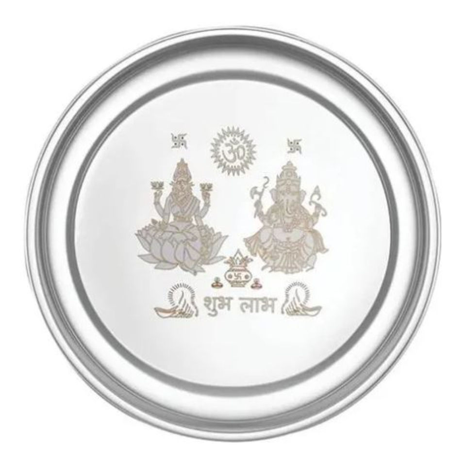 การออกแบบที่น่าชื่นชม pooja thali madir pooja thali ทำจากสแตนเลสเครื่องเงิน pooja thali สำหรับของขวัญ Diwali