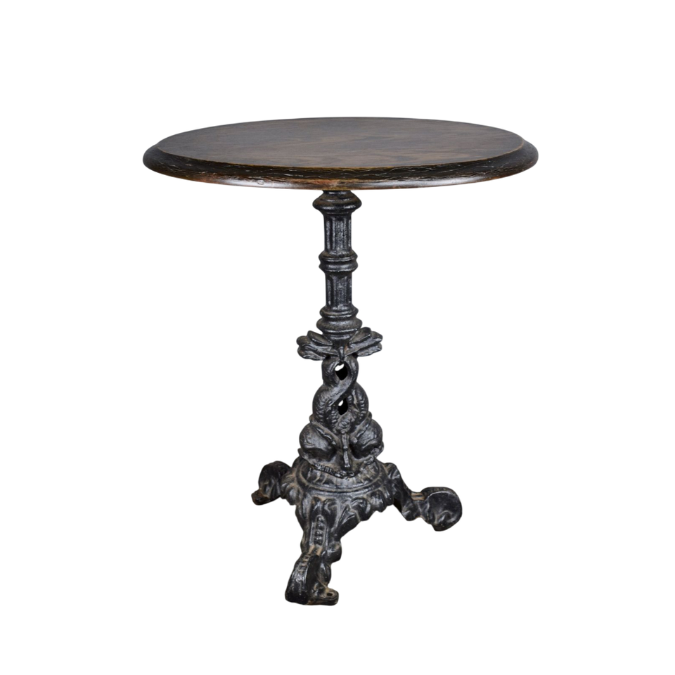 โต๊ะกาแฟทรงกลมดีไซน์สวยงาม พร้อมฐานเหล็กตกแต่งอย่างประณีต และท็อปไม้เนื้อแข็ง โต๊ะตกแต่งสำหรับร้านอาหารและคาเฟ่ ลดราคา