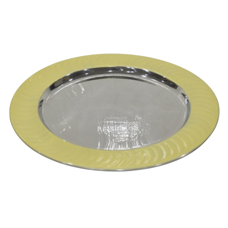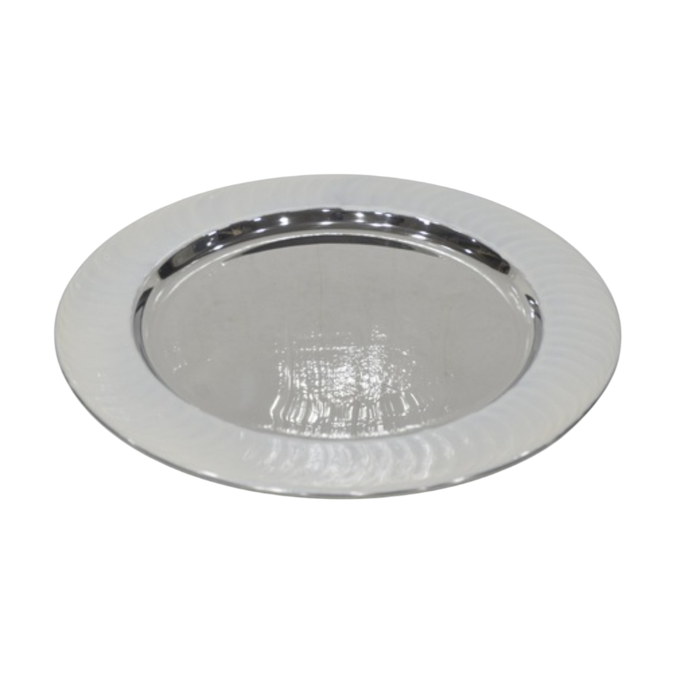จานโลหะชาร์จสีเงินออกแบบอย่างน่าชื่นชมสำหรับงานแต่งงานงานอีเวนต์และอุปกรณ์จัดเลี้ยงในวันหยุด