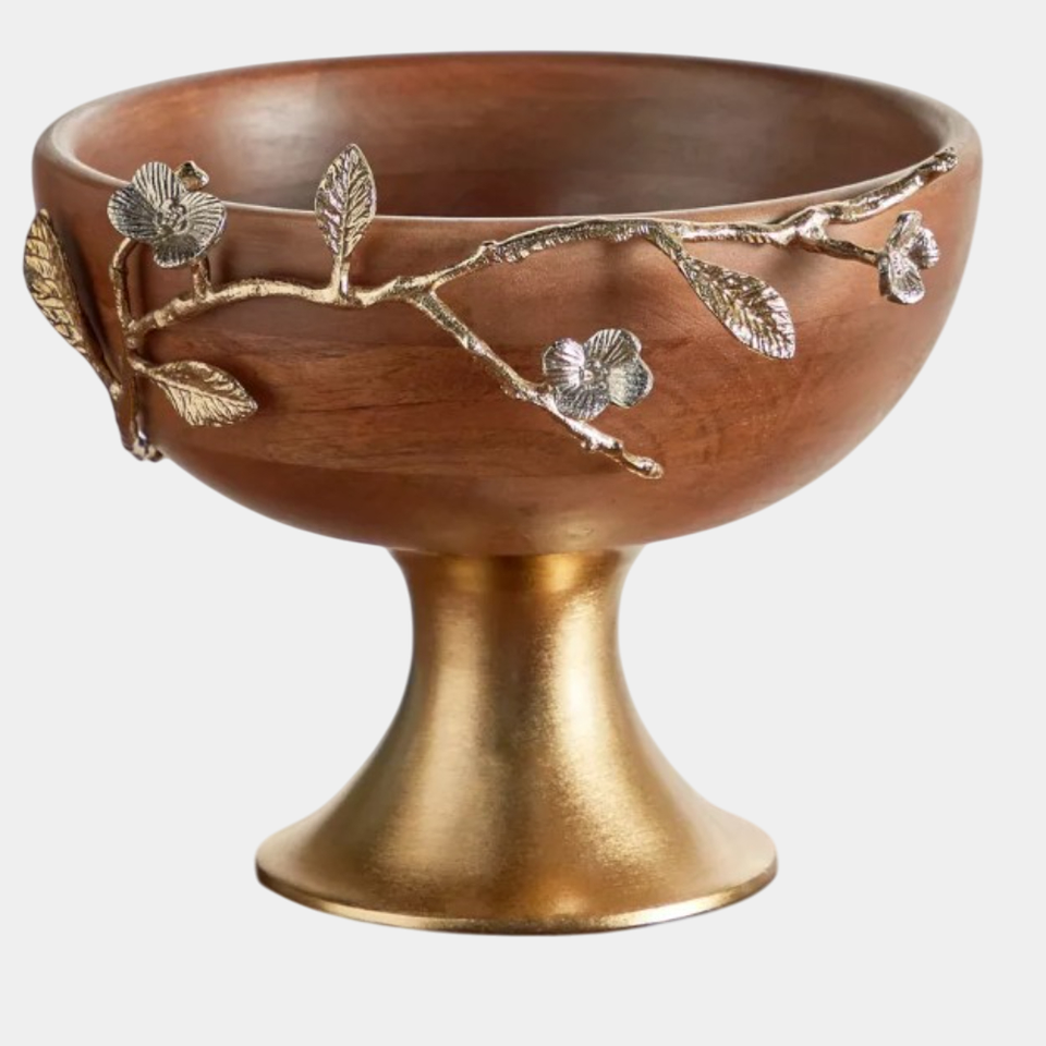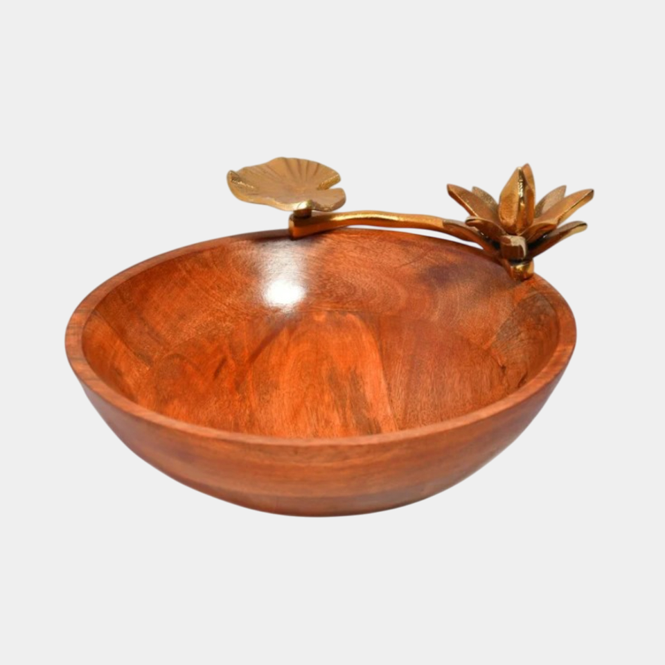 ชามเสิร์ฟอาหารสำหรับตกแต่งดอกไม้ทำจากไม้และโลหะดีไซน์ที่น่าชื่นชมในโอกาสพิเศษและการตกแต่งงานต่างๆ
