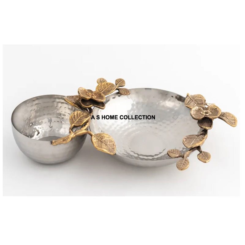 Admirable Design Wooden Stand With Superior Quality Stainless Steel Food Serving Bowl at Reasonable Price Set of 2