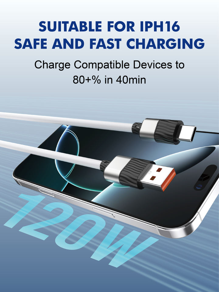 สายชาร์จและถ่ายโอนข้อมูลแบบ Type-C to Type-C คุณภาพเยี่ยม ผลิตจากซิลิโคนลายเม็ดน้ำ รองรับการชาร์จเร็ว 120W 6A