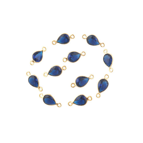 จี้สร้อยคอควอทซ์ iolite 6x8มม. น่ารัก24K ชุบทอง DIY ตัวเชื่อมต่อทำถังคู่ทองเหลือง24K ทอง