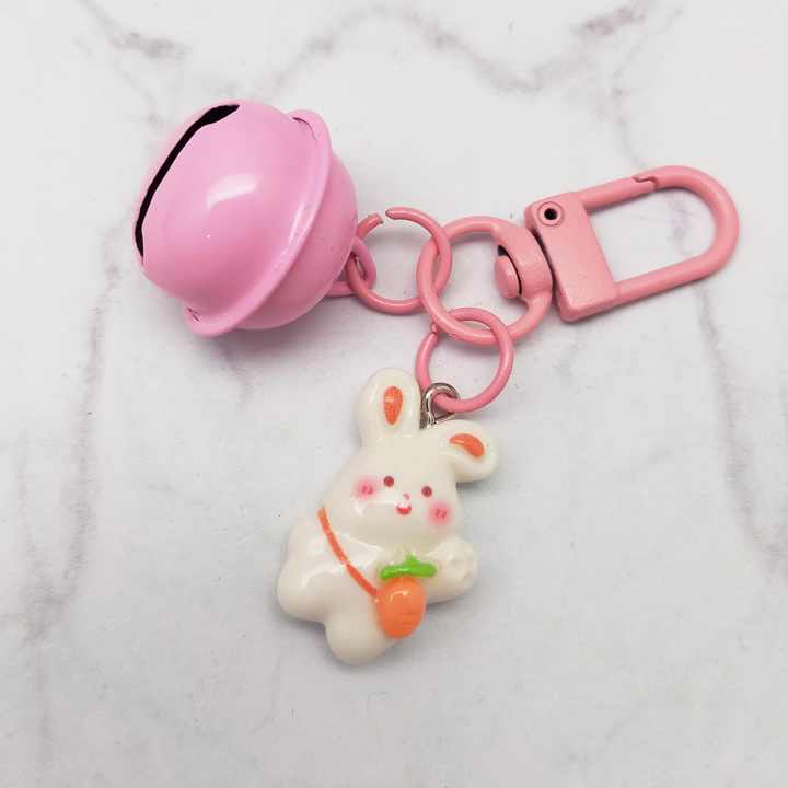 ชื่อสินค้า:พวงกุญแจน่ารักสดใส สีพาสเทลชมพู กระดิ่ง กระต่าย แครอท