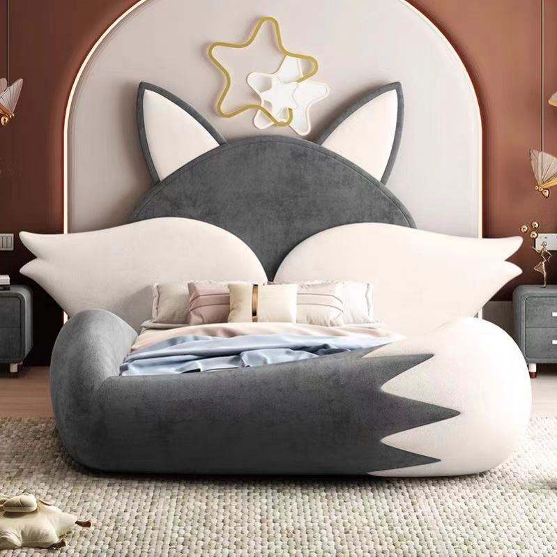 เตียงเจ้าหญิงจิ้งจอกน่ารักเตียงเดี่ยวทำจากไม้จริงพร้อมที่กั้นเบาะนุ่มสำหรับเด็กผู้หญิงดีไซน์เรียบง่ายทันสมัย