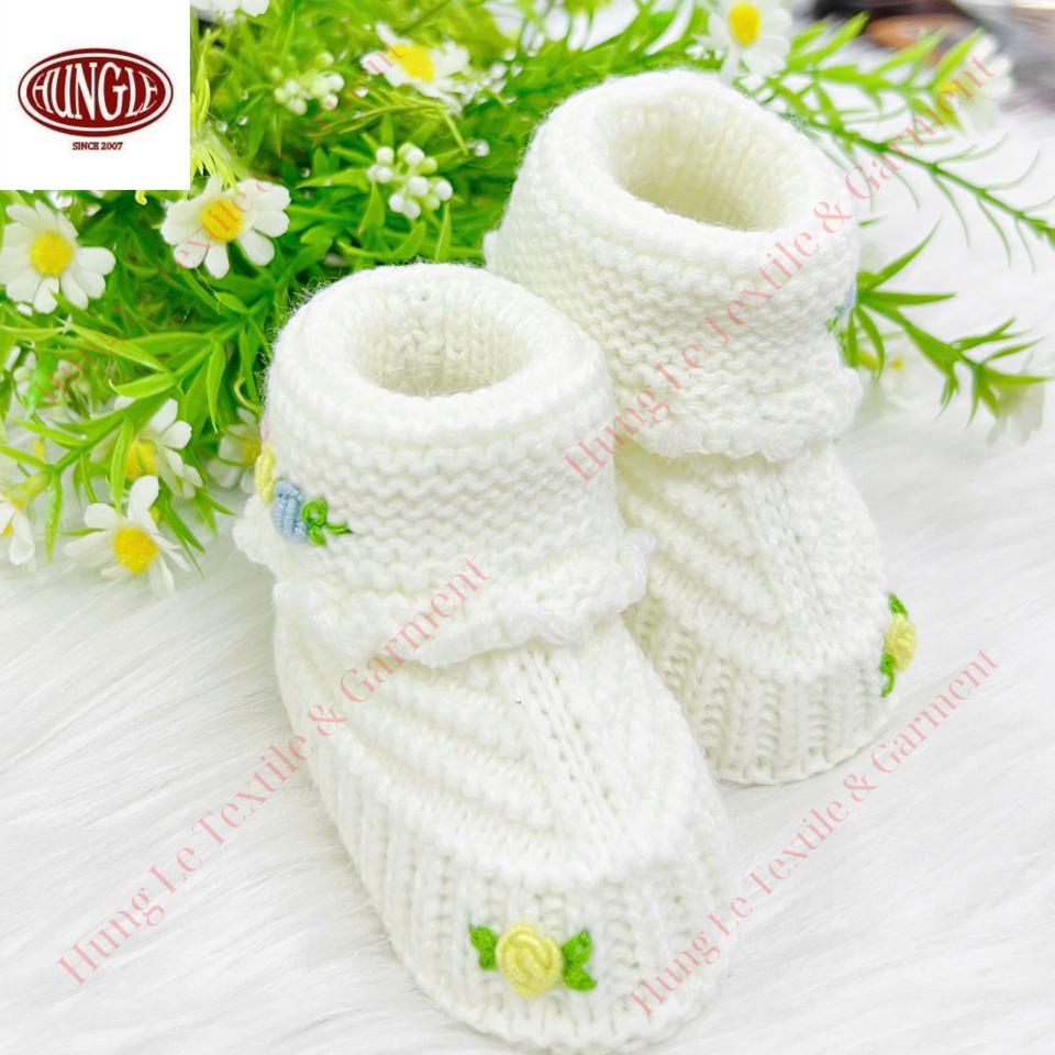 รองเท้าบูทเด็กถักมือน่ารักพร้อมปักลายดอกไม้