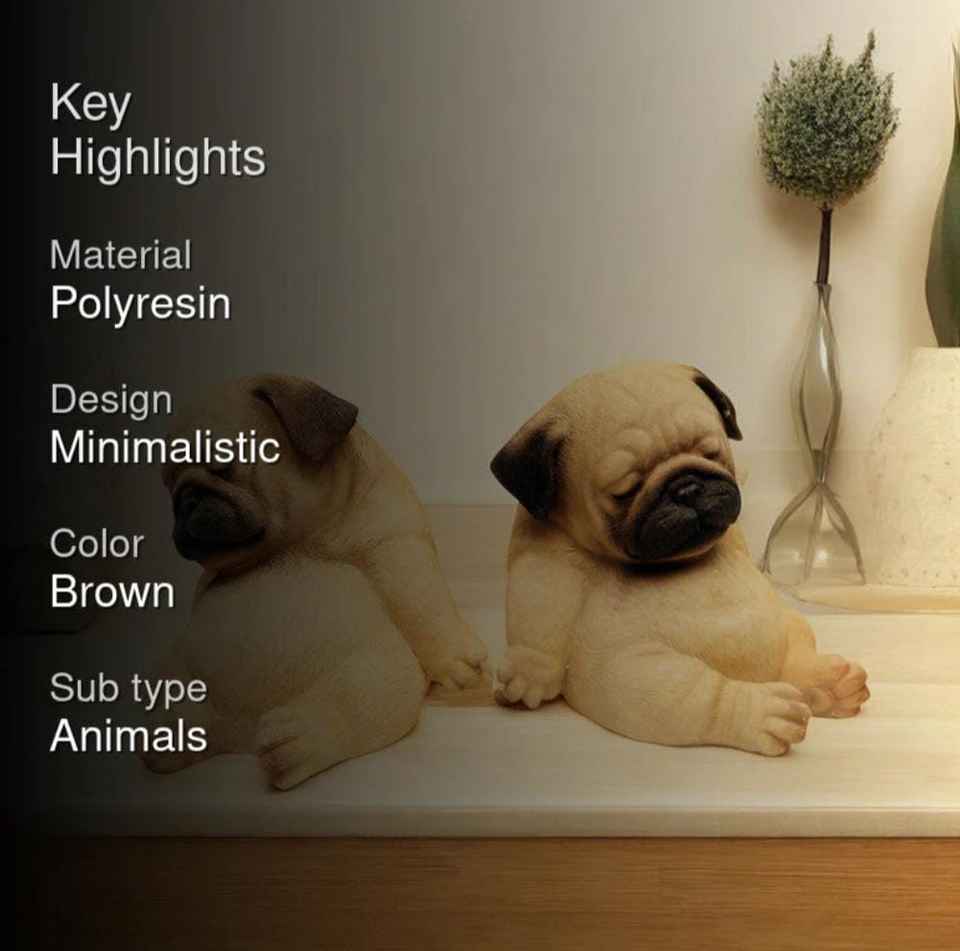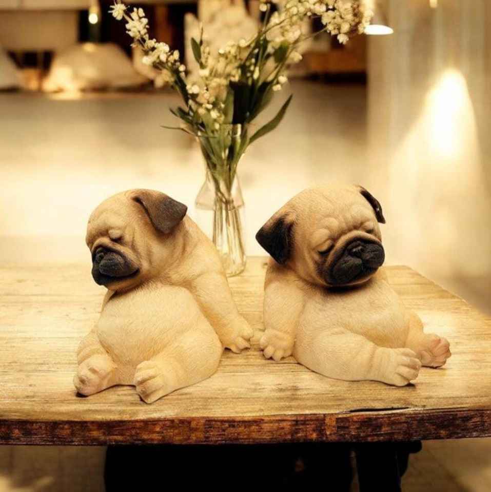 ชุดตุ๊กตาเรซิ่นรูปสุนัขพันธุ์ปั๊กขี้เกียจ ดีไซน์มินิมอล น้ำหนักเบา สำหรับตกแต่งห้องเด็ก ห้องทำงาน หรือบ้าน จำนวน 2 ชิ้น