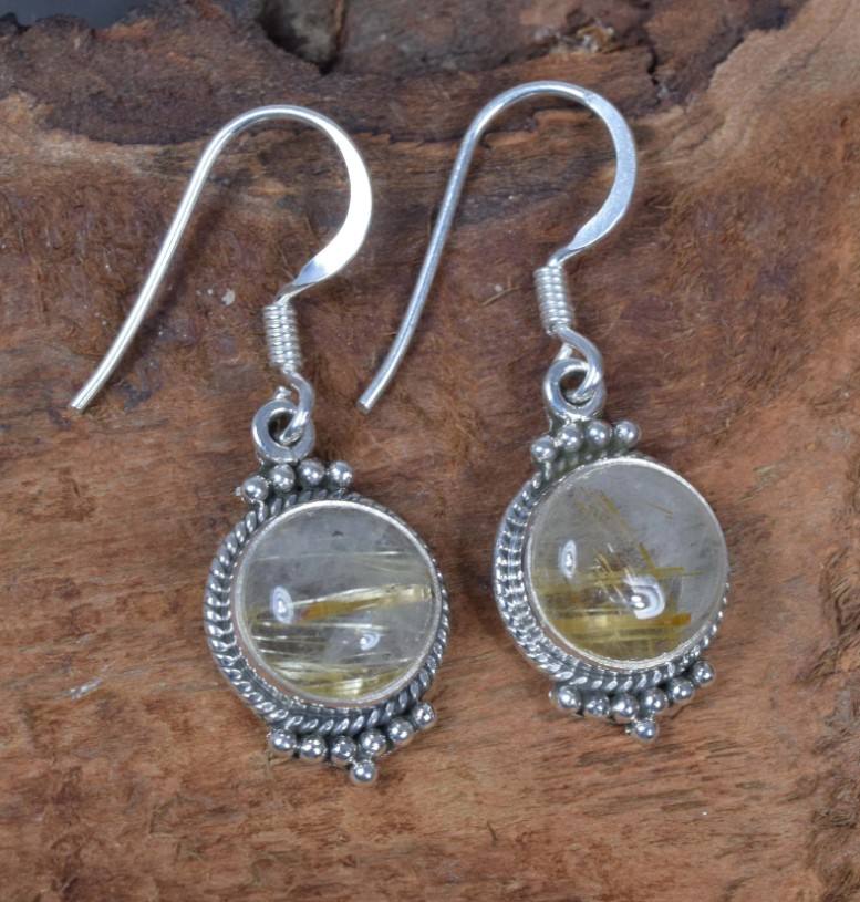 Product Name:Natural Golden Rutile Gemstone Silver Earrings