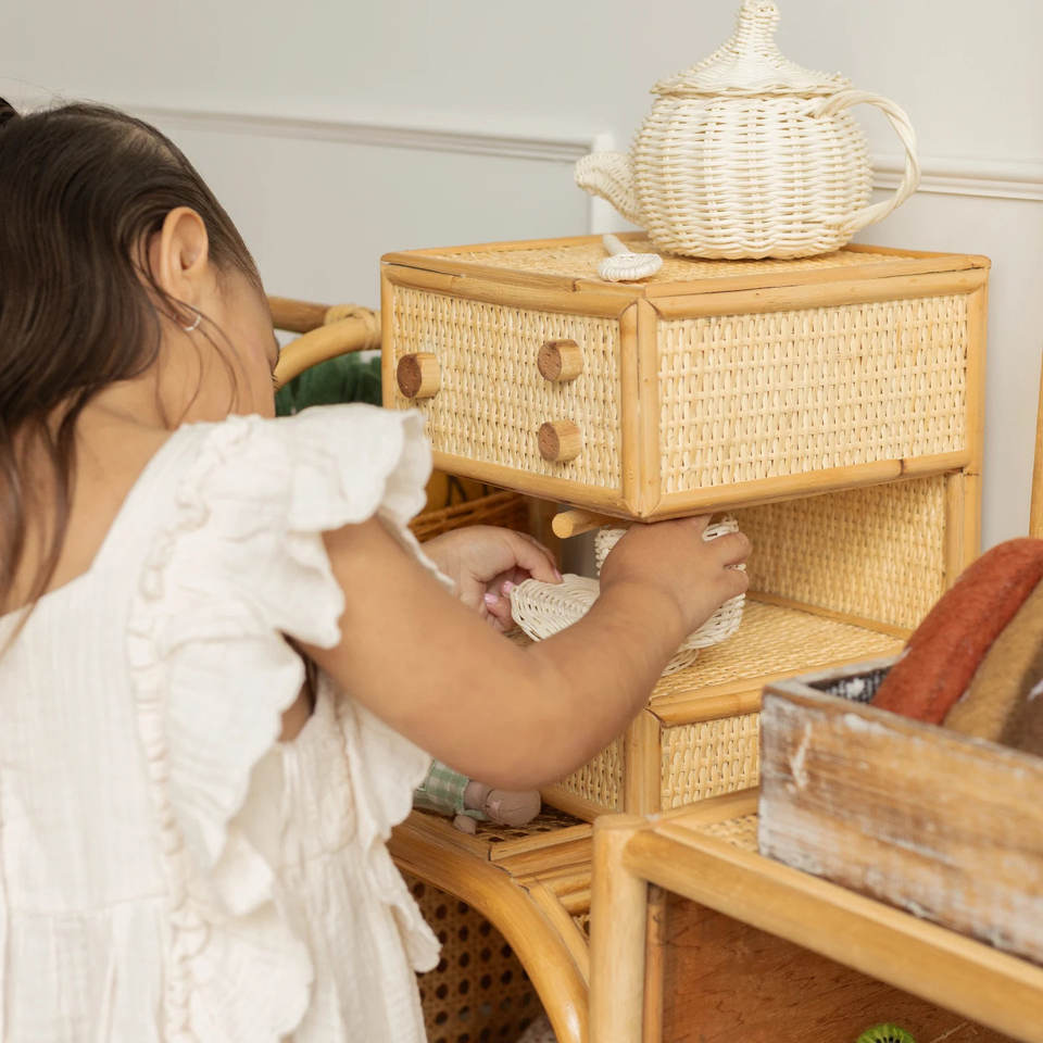 rattan kid toys coffee machine