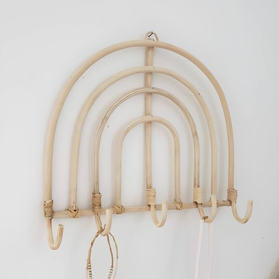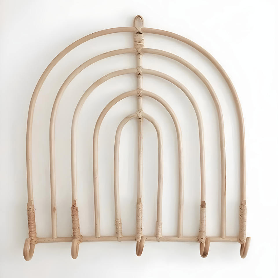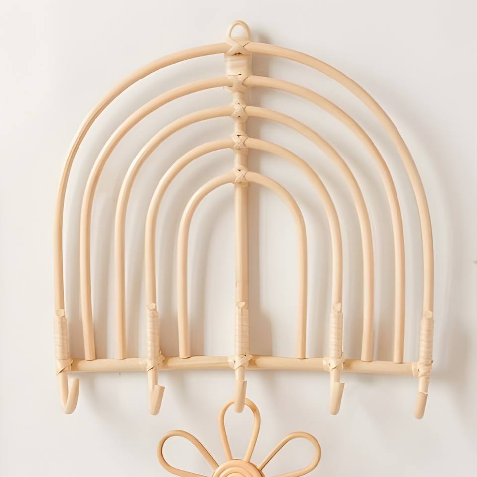 ตะขอแขวนผนังหวายน่ารักสีรุ้งสำหรับเสื้อผ้าเด็กทารกอุปกรณ์เสริมสำหรับห้องอนุบาลตะขอติดผนังธรรมชาติ