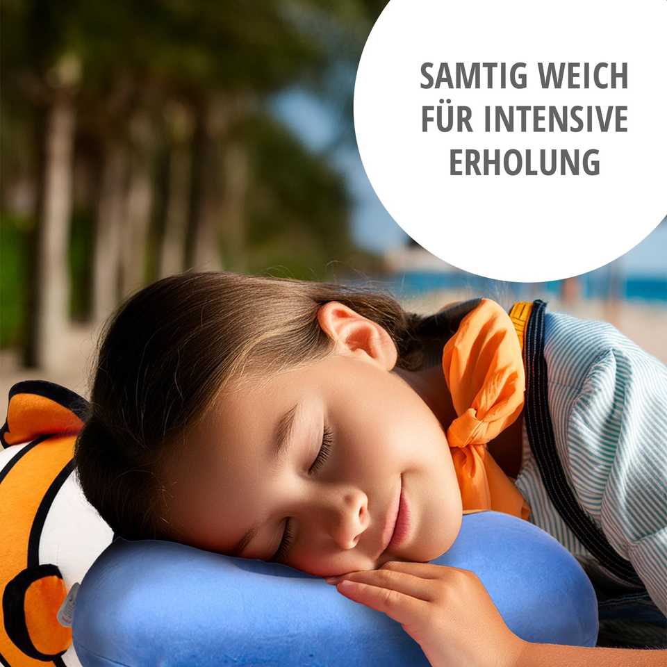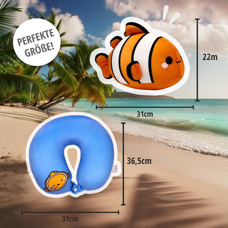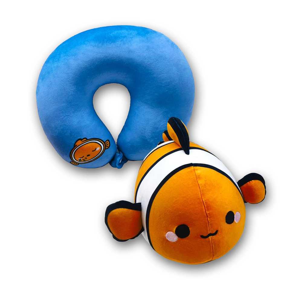 หมอนรองคอเดินทาง 2-in-1 รูปปลาการ์ตูน Adoramals พกพาสะดวก ทำจากผ้าฝ้ายและโพลีเอสเตอร์ ใช้ได้ทั้งในรถยนต์และที่ทำงาน สามารถสกรีนโลโก้ได้