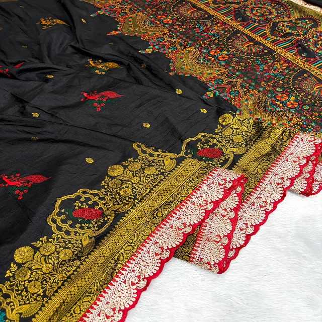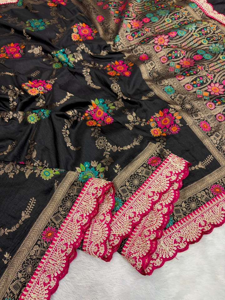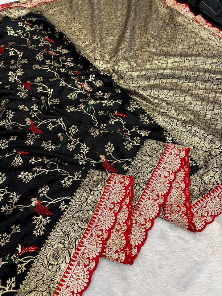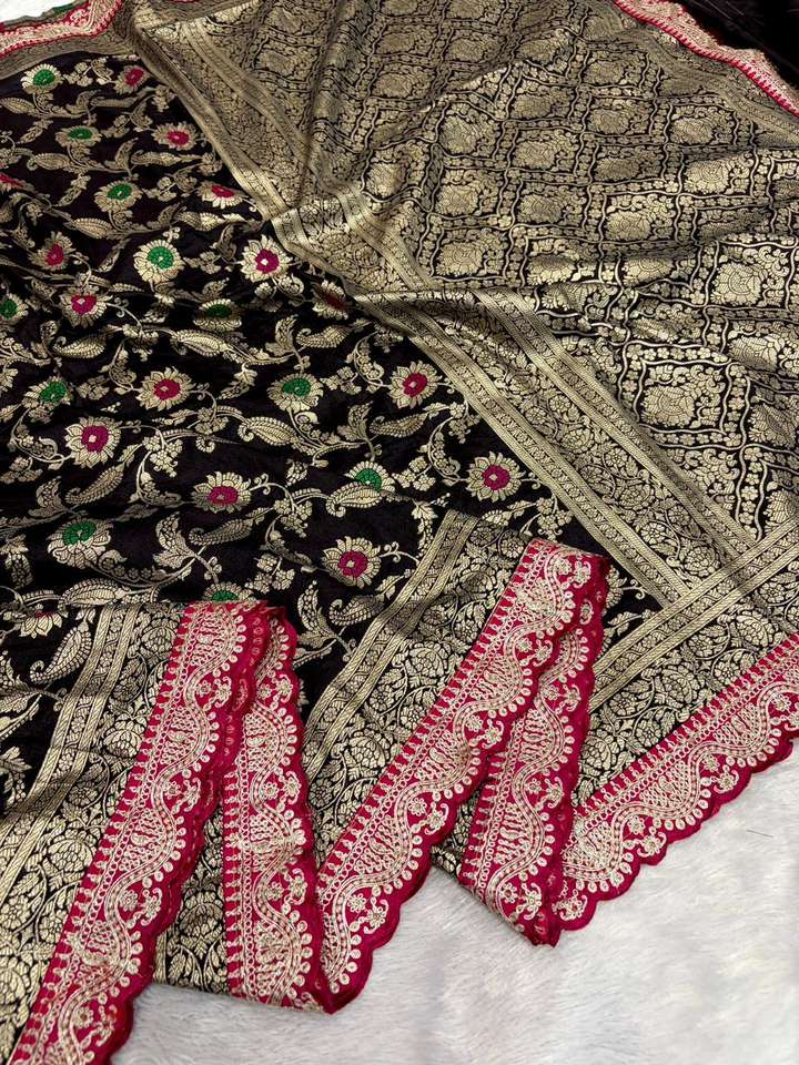 ประดับประดาตัวคุณด้วยผ้าส่าหรีดีไซเนอร์สำหรับผู้หญิง ผ้าจอร์เจตต์คัดดี้แท้ สวยงาม โดดเด่น พร้อมขอบลายสเกลลอปสุดประณีตสไตล์ซาบายาซาชี