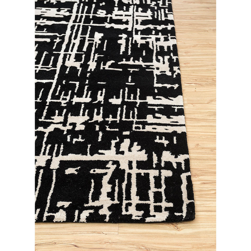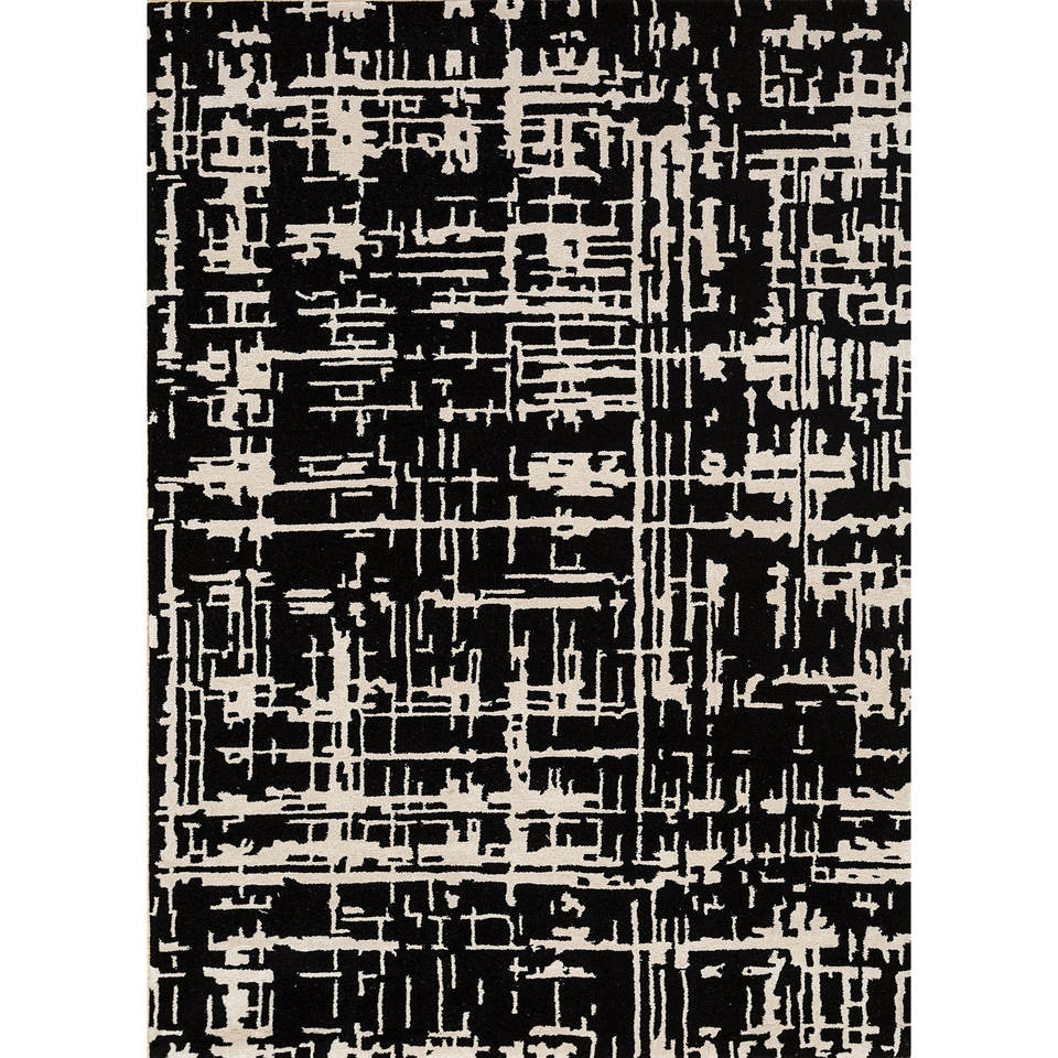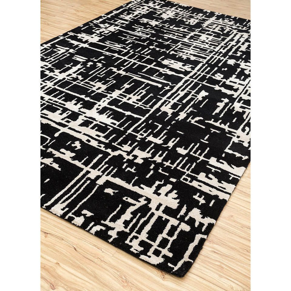 พรมขนสัตว์ผสมวิสโคสทอมือลายเรขาคณิตสีเทาดำ ทอแบบแบน สำหรับตกแต่งบ้านและทางเดิน ผลิตภัณฑ์จาก Jaipur Rugs รุ่น ZA-Taq-266