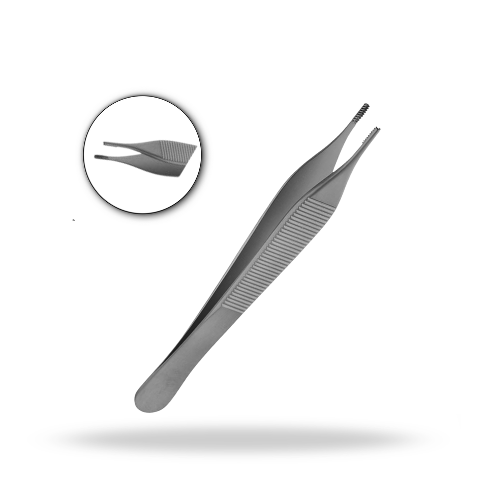 คีมคีบเนื้อเยื่อ Adson Brown ขนาดมาตรฐาน พร้อมฟัน 9x9 ทำจากสแตนเลสคุณภาพสูง สำหรับการผ่าตัดที่ละเอียดอ่อน