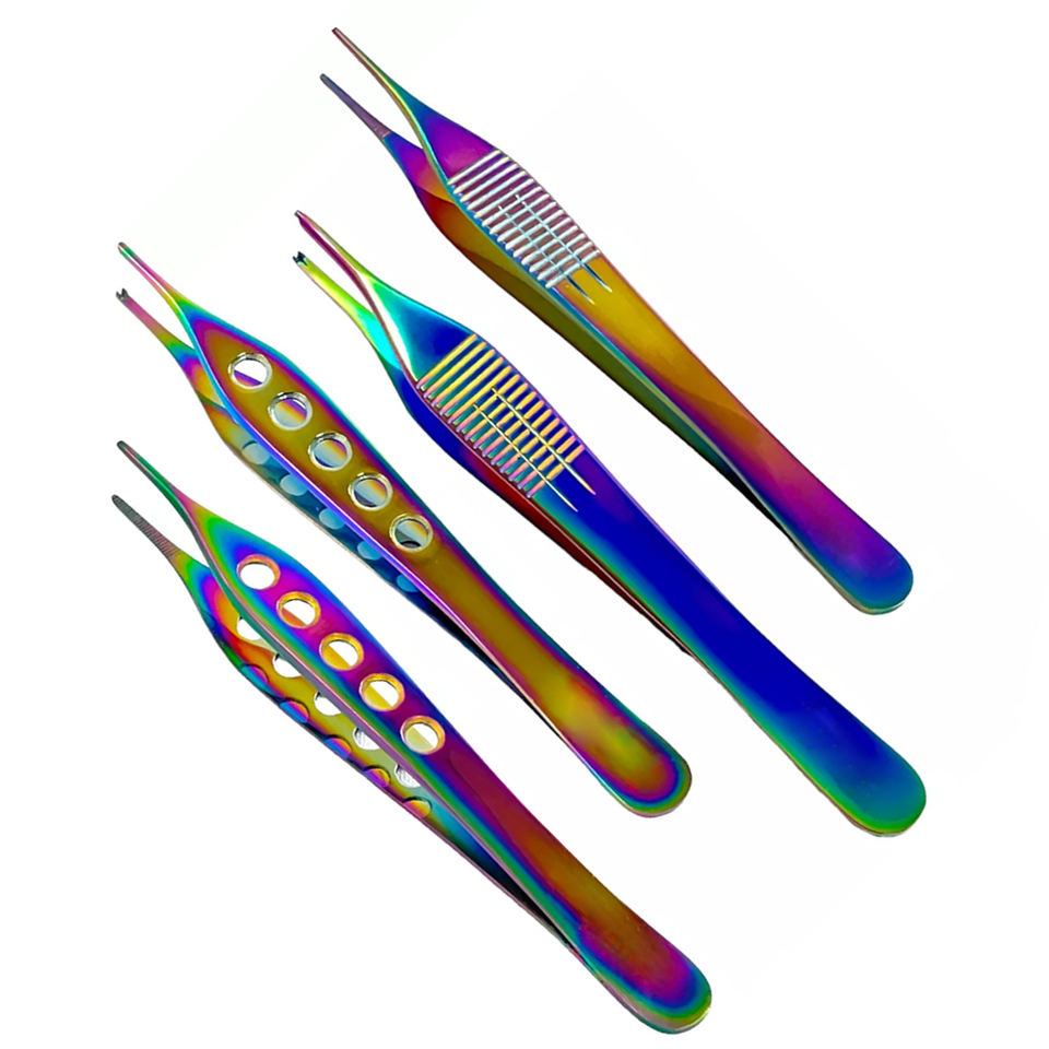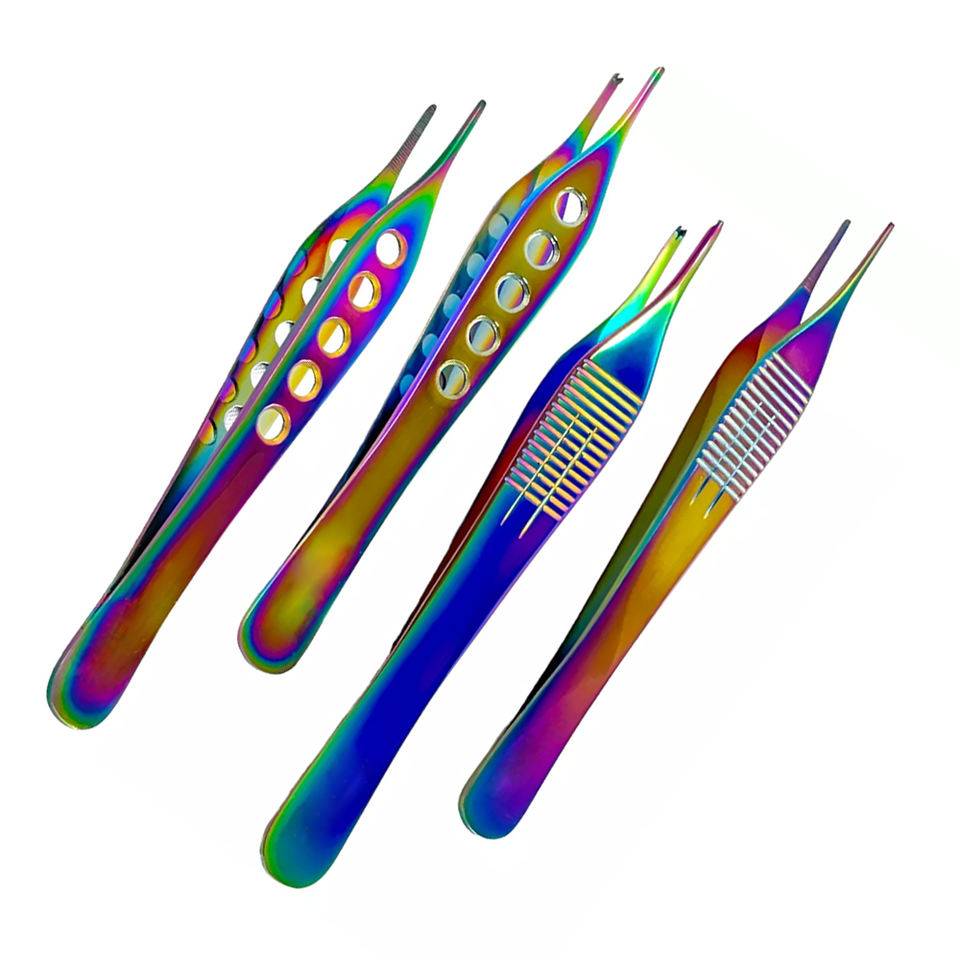 Adson Forceps Set of 2 4 75 Inch 12cm Rainbow Titanium German Stainless Steel Surgical Forceps for Metric Use