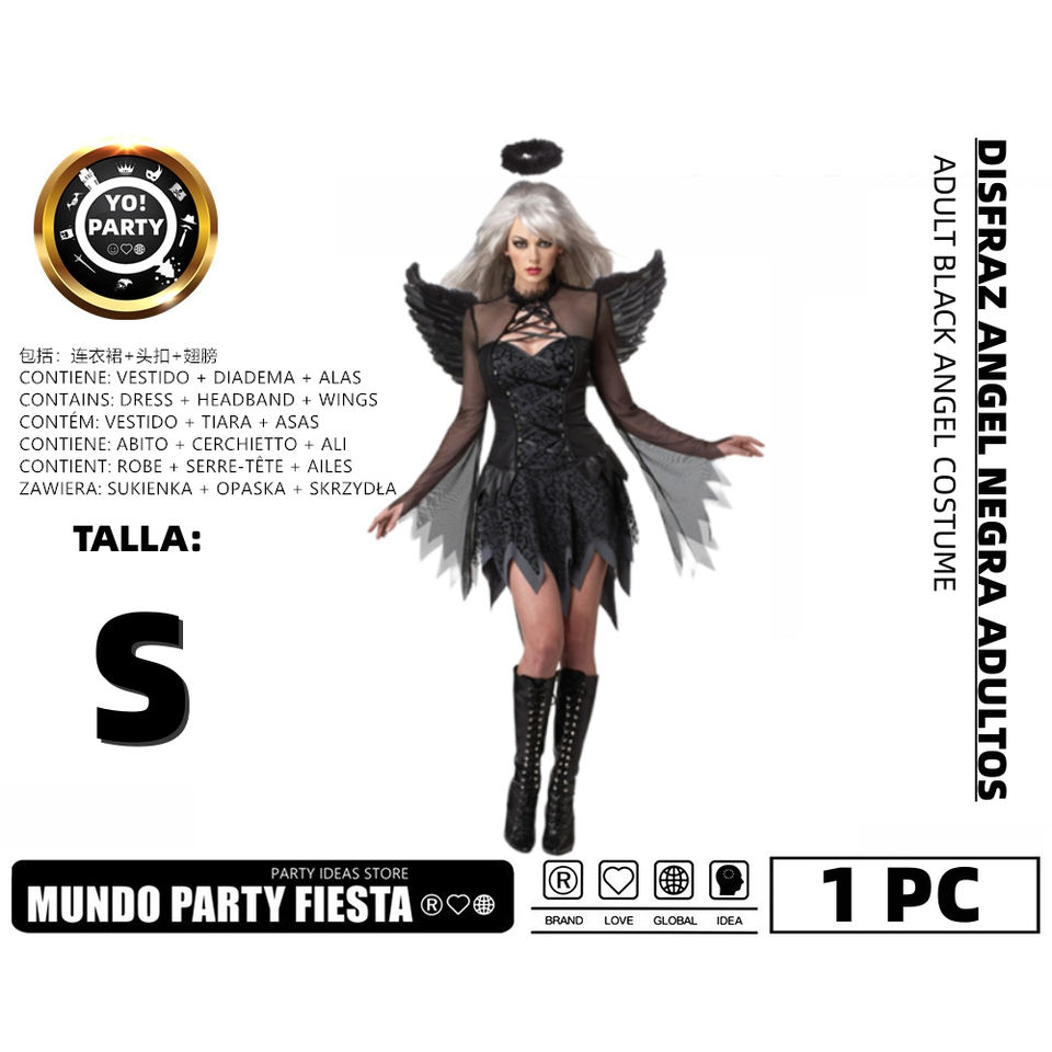 Adult Black Angel Costume Set #12016 for Cosplay Featuring Skirts and Headband for Girl's Carnival Festival