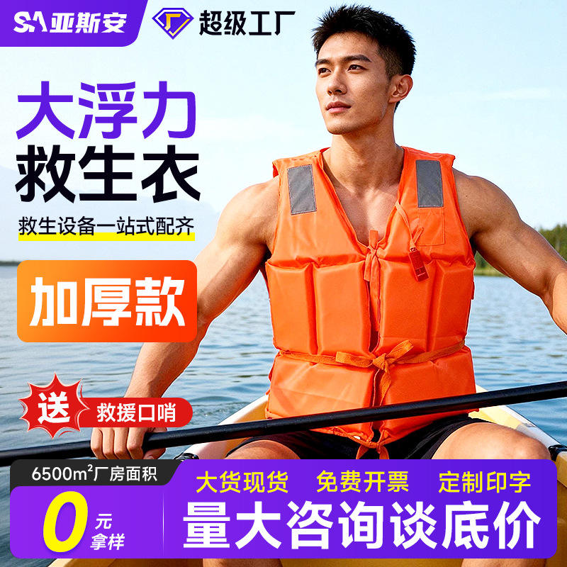 เสื้อชูชีพโฟมสำหรับผู้ใหญ่ ความลอยตัวสูง สำหรับพายเรือ ตกปลา ล่องแก่ง เสื้อชูชีพเพื่อความปลอดภัย สีส้ม